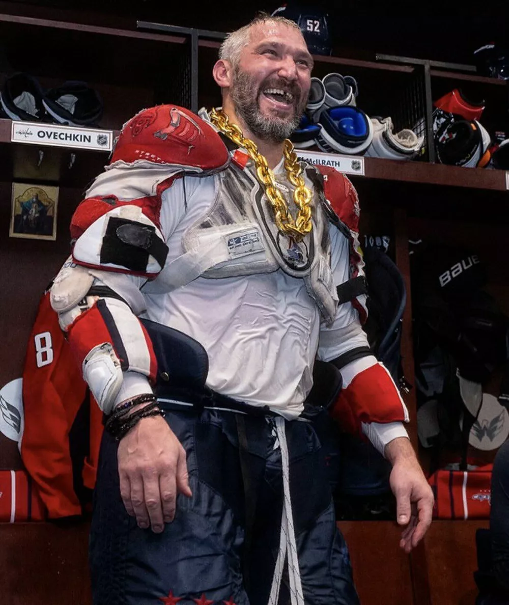 Гретцки, которому сейчас 64 года, приехал лично поздравить Овечкина с победой. В знак уважения Александр встал перед канадцем на одно колено, а после Уэйн вручил россиянину шайбу — символ повторения рекорда.