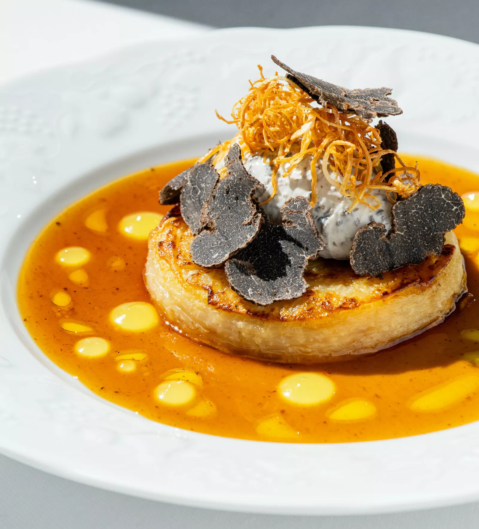 Мильфей из сельдерея с кремом из кешью и черным трюфелем
