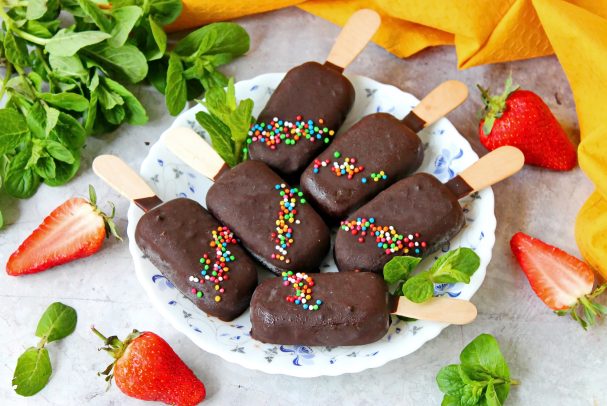 Подготовьте все необходимые ингредиенты для приготовления домашнего эскимо на палочке.