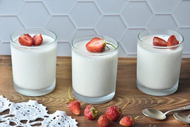 Аккуратно разлейте по стаканам молоко с закваской, стараясь его не вспенивать.