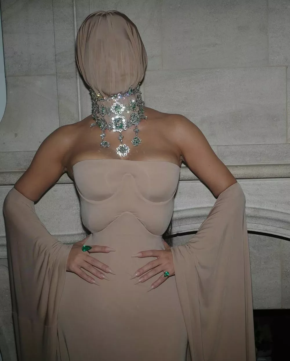 Однажды Кардашьян уже носила маску — на балу Met Gala в 2021 году. В то время звезда скопировала образ Уэста, облачившись в полностью черный наряд Balenciaga, который включал в себя футболку-тунику, боди, перчатки до локтей и леггинсы с туфлями на каблуках.