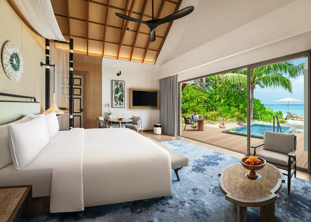 Дизайн вилл сочетает традиционные мальдивские мотивы с современными решениями, которые были вдохновлены красотой острова, и выполнен в природных оттенках с использованием натуральных материалов — дерева, камня. Душевые под открытым небом окружены зеленью тропических растений, а плавные переходы из жилой зоны к пляжу создают ощущение полного слияния с природой.