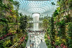 Специалисты объяснили, что в этой авиагавани, которая уже побеждала во множестве конкурсов, есть самый высокий в мире крытый водопад, круглосуточный кинотеатр, сады бабочек и бамбука, а также бассейн и джакузи на крыше, чтобы туристы могли любоваться взлетающими самолетами.