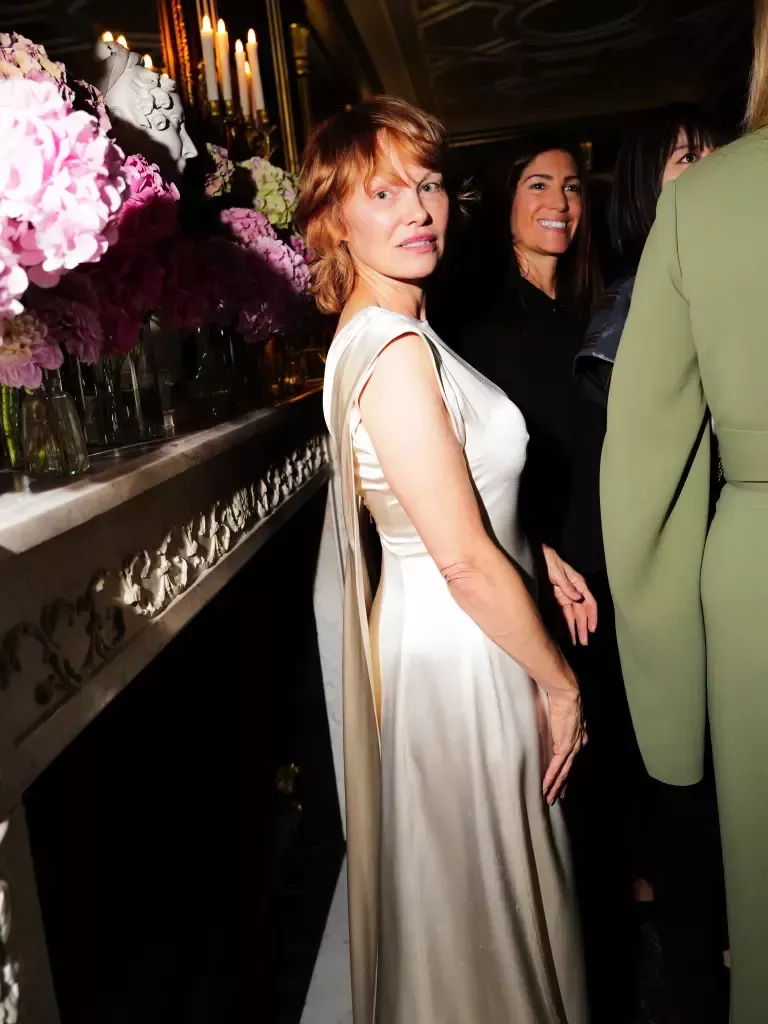 Новый образ Памела подчеркнула молочным атласным платьем в пол, напоминающим греческую тунику.