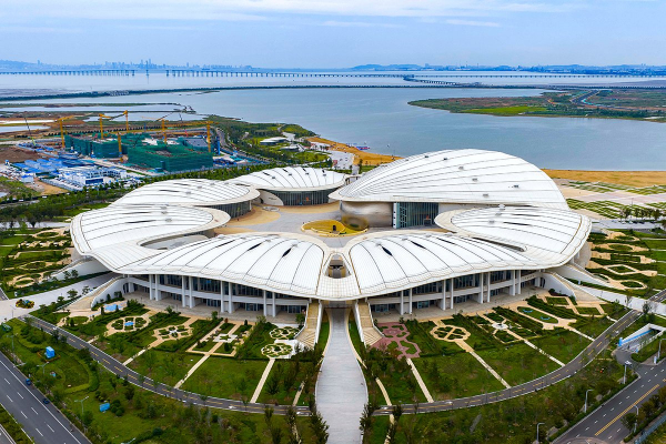 Международный центр ШОС — сооружение в форме гигантской жемчужины, построенное к саммиту ШОС в 2018 году
