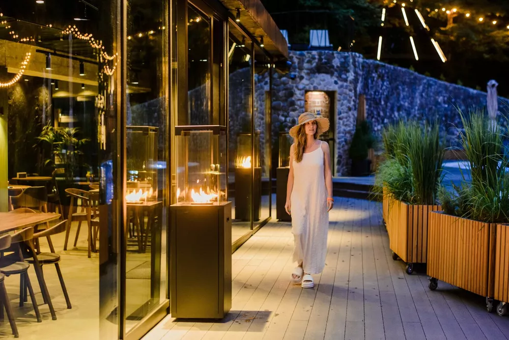 Pine River в Красной Поляне, один из эко-отелей сети, расположенных в самых живописных уголках России, – не просто место для отдыха. Здесь природная чистота встречается с эстетикой и удовольствием. Погружение в абсолютное спокойствие начинается с размещения – не в номерах, нет, а в необычных прозрачных домиках “Нео-Типи” с панорамными окнами, из которых открывается величественный вид на хребет Аибга (2600 м). Оказавшись в таком домике, который полностью сливается с ландшафтом, чувствуешь невероятное единение с окружающей природой – но при этом живешь в комфортных условиях современного отеля. Все 27 домиков с зеркальным напылением прозрачны только с одной стороны, изнутри. А когда солнце садится и внутри включается свет, всегда можно задернуть шторы, что создаст полную приватность и поможет спрятаться от первых лучей солнца, если вдруг не хочется просыпаться с рассветом.